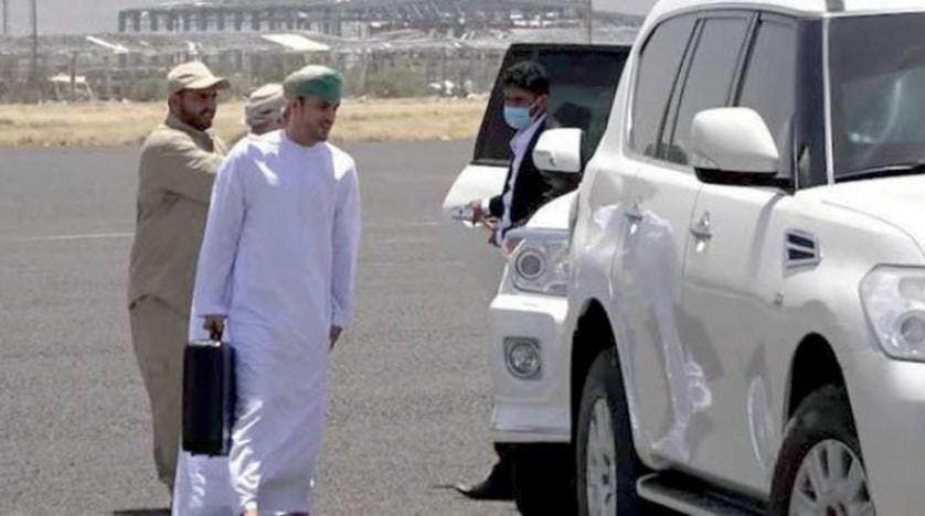 صورة تداولتها وسائل إعلام حوثية لوصول الوفد العماني إلى صنعاء