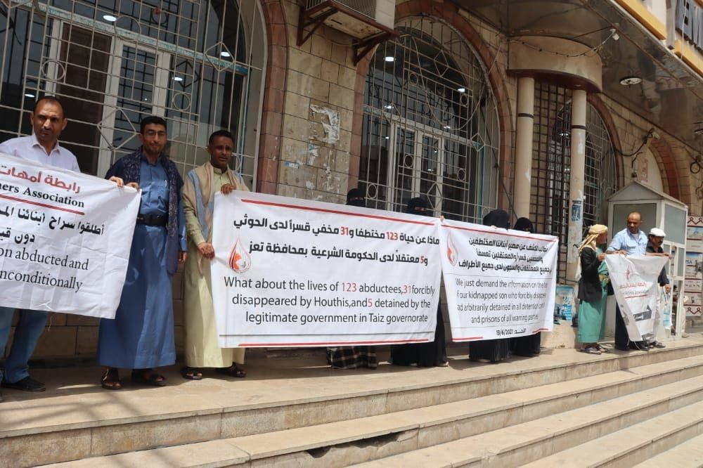 وقالت أمهات المختطفين في وقفة احتجاجية نفذتها، اليوم الأحد، بمدينة تعز، إن جماعة الحوثي لا تزال تختطف على الأقل 123 مواطنا وتخفي 31 مواطنا وترفض بشكل كامل إدراجهم في قوائم المفاوضات الدولية أو المحلية و5 معتقلين لدى الأجهزه الأمنية التابعة للحكومة الشرعية.