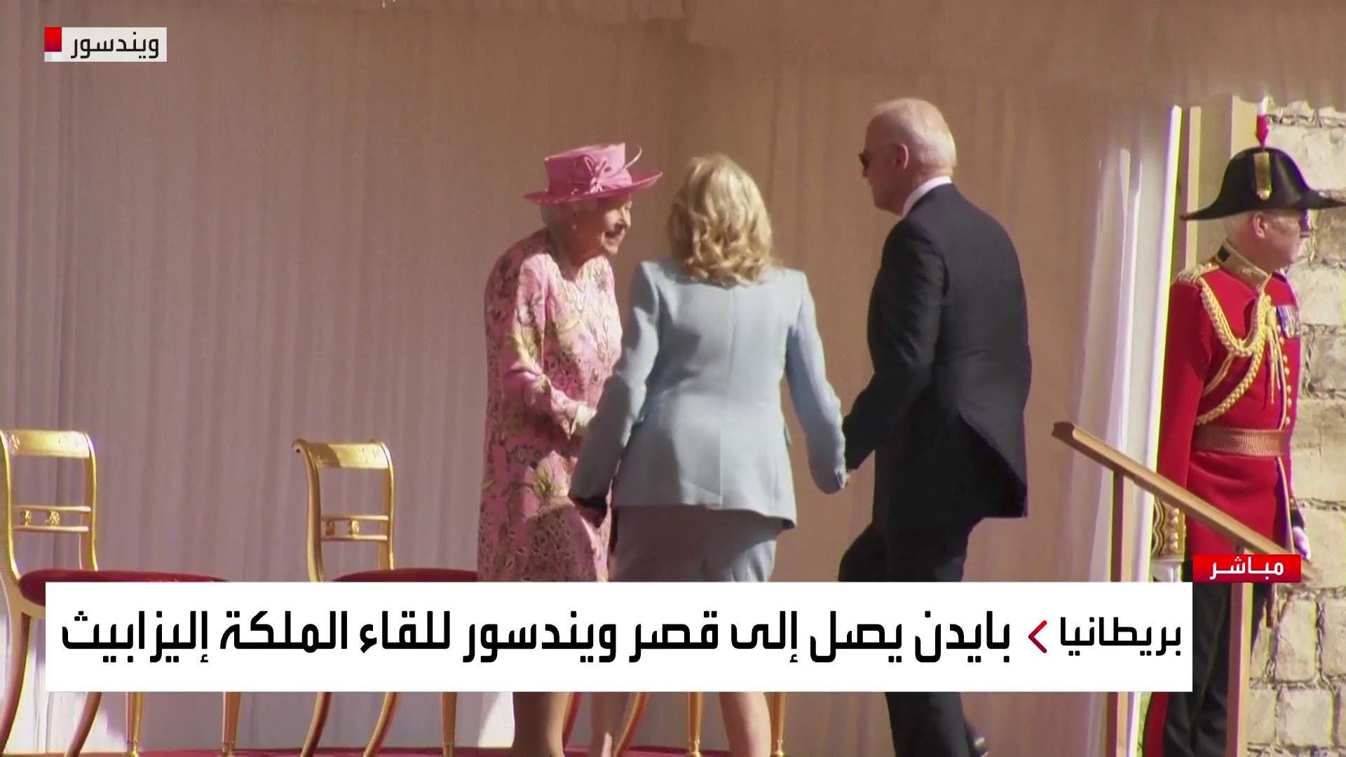 ورحبت ملكة بريطانيا (95 عاما)، التي كانت ترتدي ملابس زهرية زاهية، ببايدن وزوجته في باحة القلعة، منزل العائلة المالكة منذ ما يقرب من ألف عام، حيث تقضي معظم وقتها منذ تفشي جائحة فيروس كورونا.