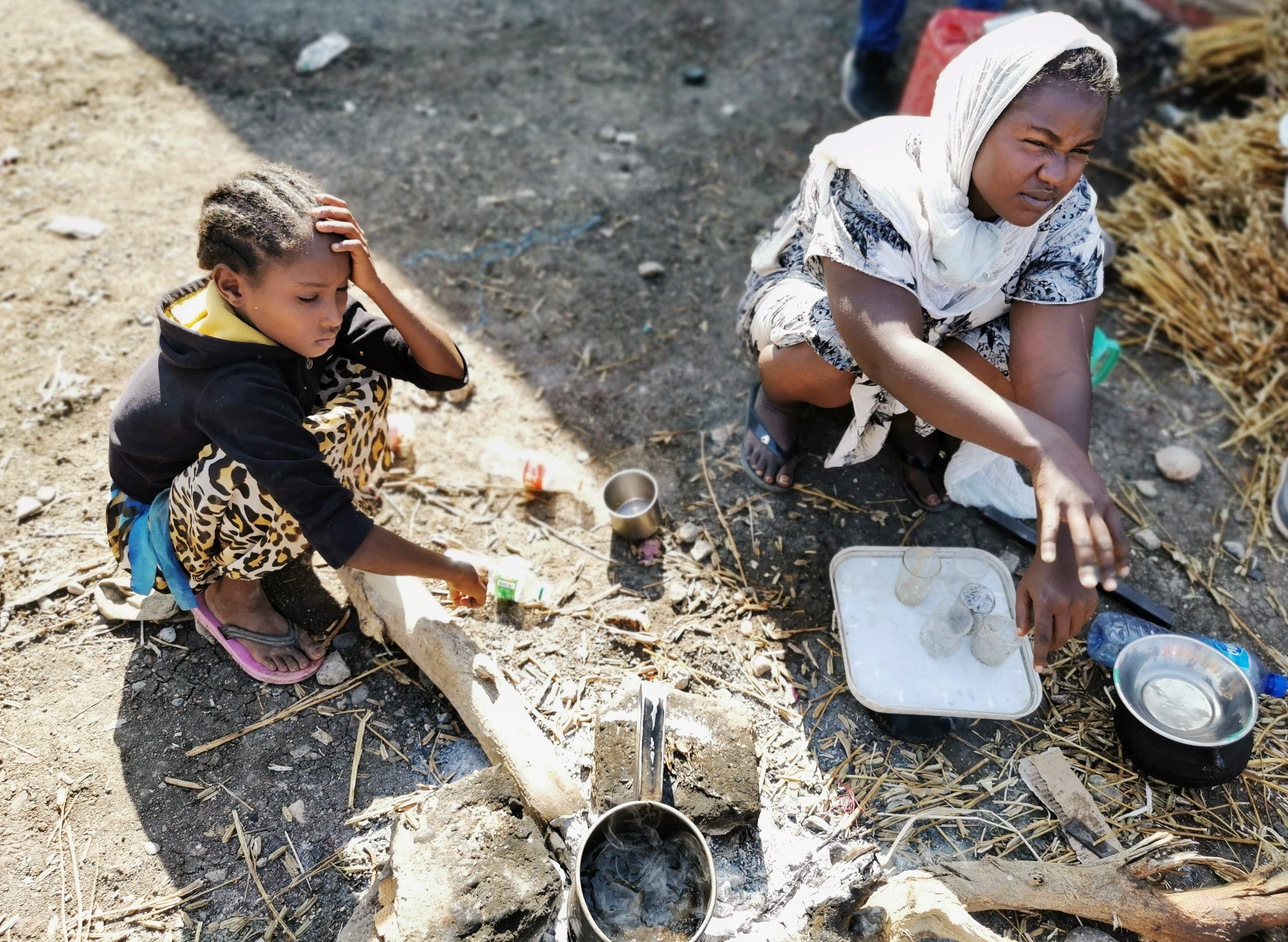 أطفال إثيوبيون فروا من القتال الدائر بتيغراي