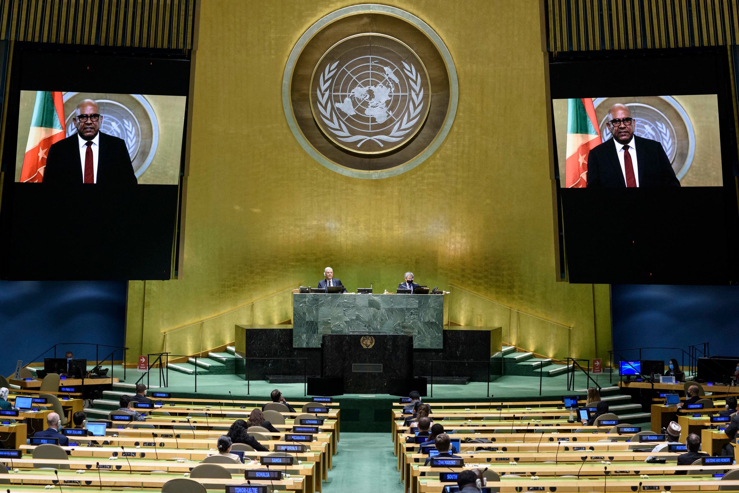 وكانت الجمعية العامة اضطرّت في السنة الماضية إلى عقد مناقشتها العامة السنوية افتراضياً بسبب جائحة كوفيد-19. وبدلاً من أن يعتلي رؤساء الدول والحكومات منبرها في نيويورك لإلقاء خطاباتهم كما في كل عام، اضطرّوا يومها إلى تسجيل مقاطع فيديو لكلماتهم وإرسالها إلى المنظمة الدولية التي بثّتها عبر الشاشة.