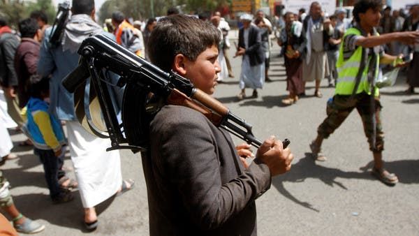 أطفال يحملون قطع سلاح خلال تجمّع للحوثيين في صنعاء في يوليو 2020