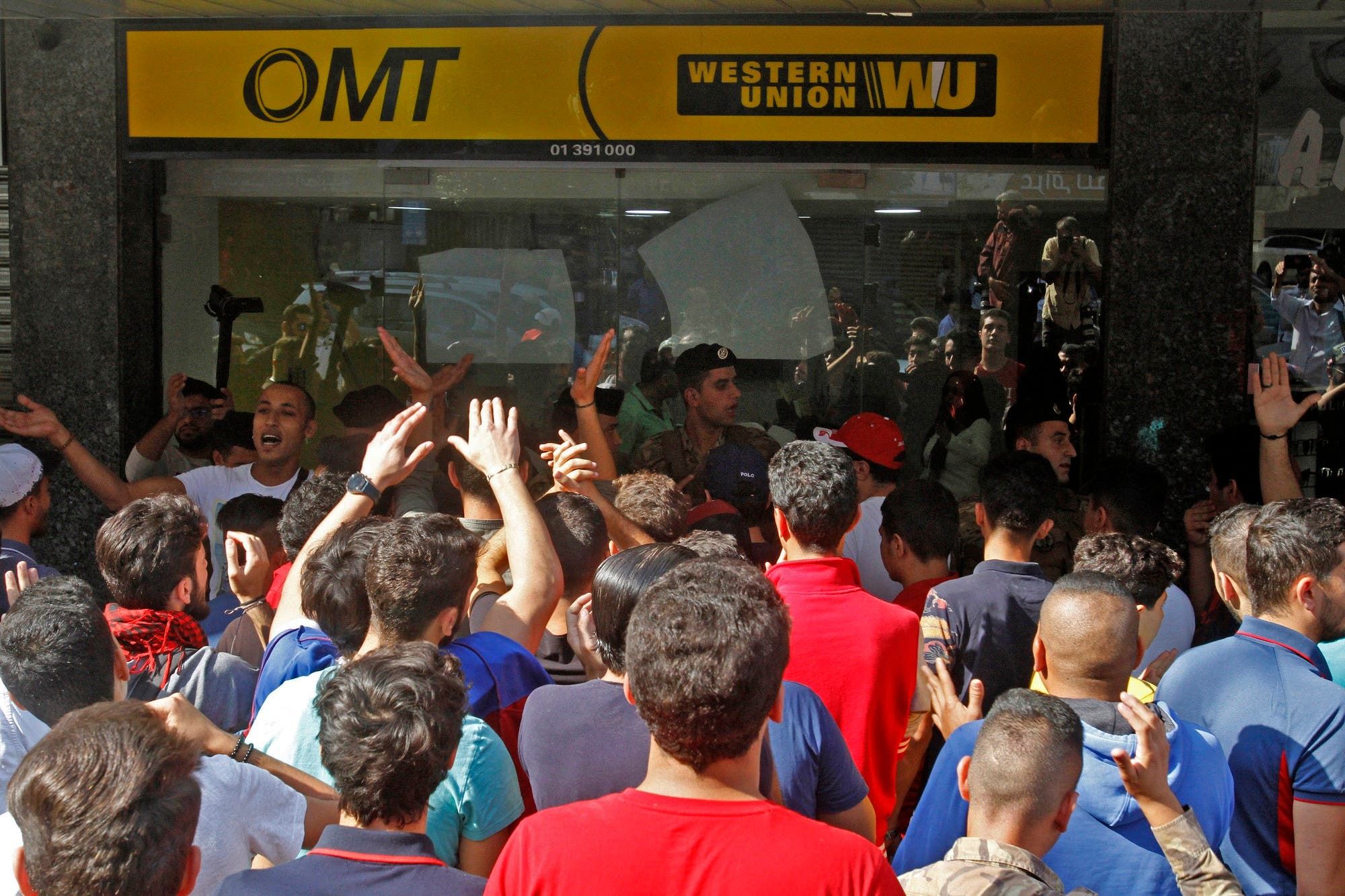 خارج مزود خدمة تحويل الأموال في صيدا جنوب لبنان (أرشيفية من فرانس برس)