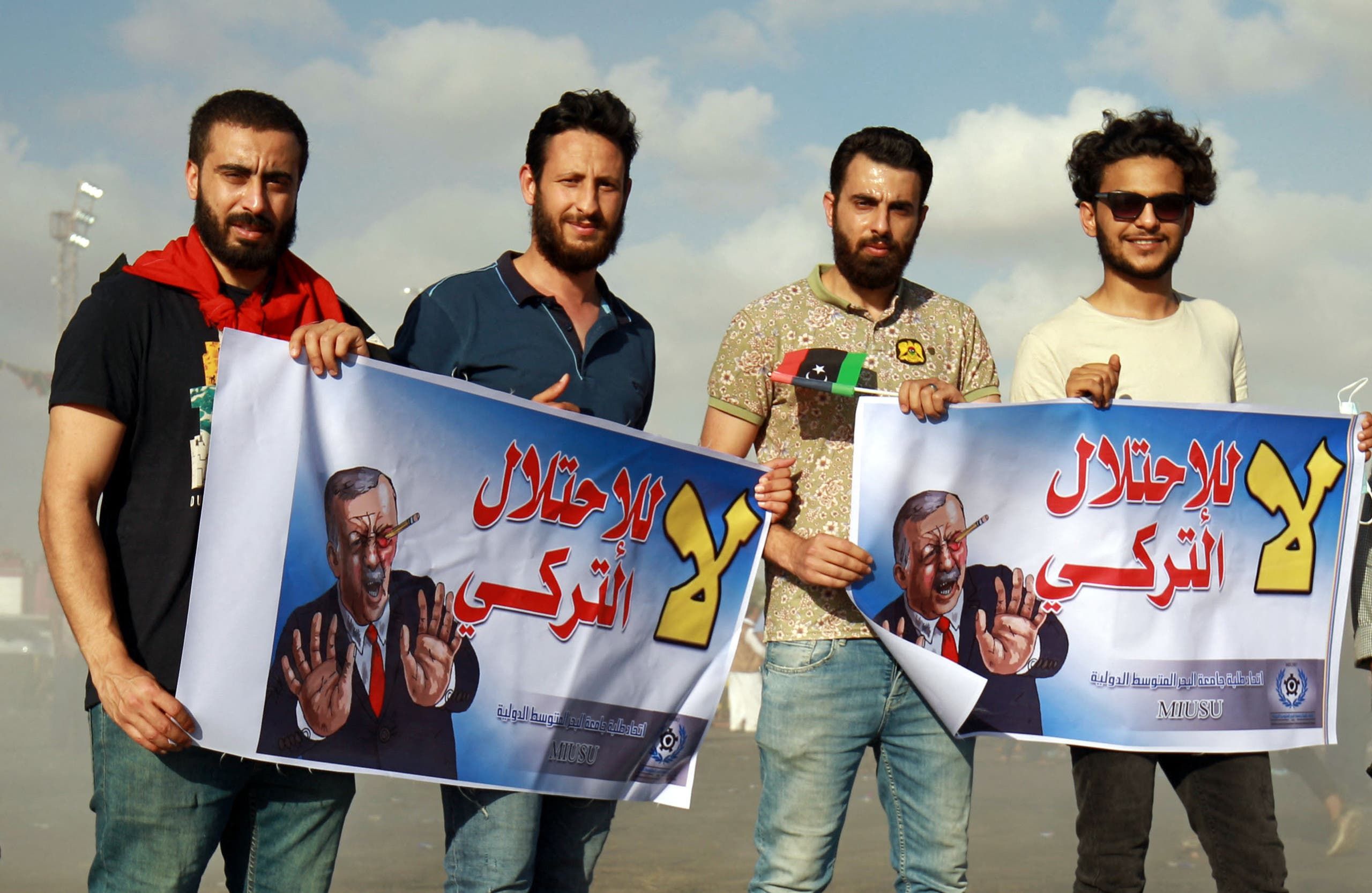 شبان في ينغازي يرفعون لافتات ضد التدخل التركي في يلادهم (أرشيفية)