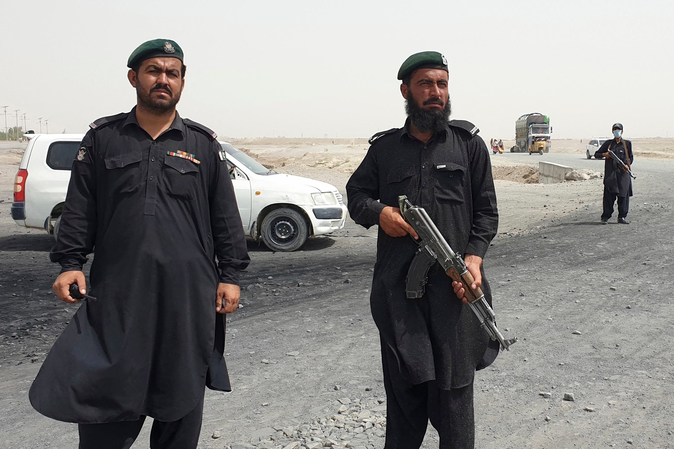 حرس الحدود الأفغاني في سبين بولداك قرب الحدود مع باكستان حيث دارت معارك مع طالبان