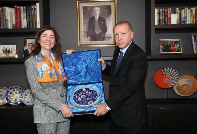 إليف تشوم أوغلو أولغن مع الرئيس التركي خلال زيارة الأخير لجنوب أفريقيا (Nordic Monitor)