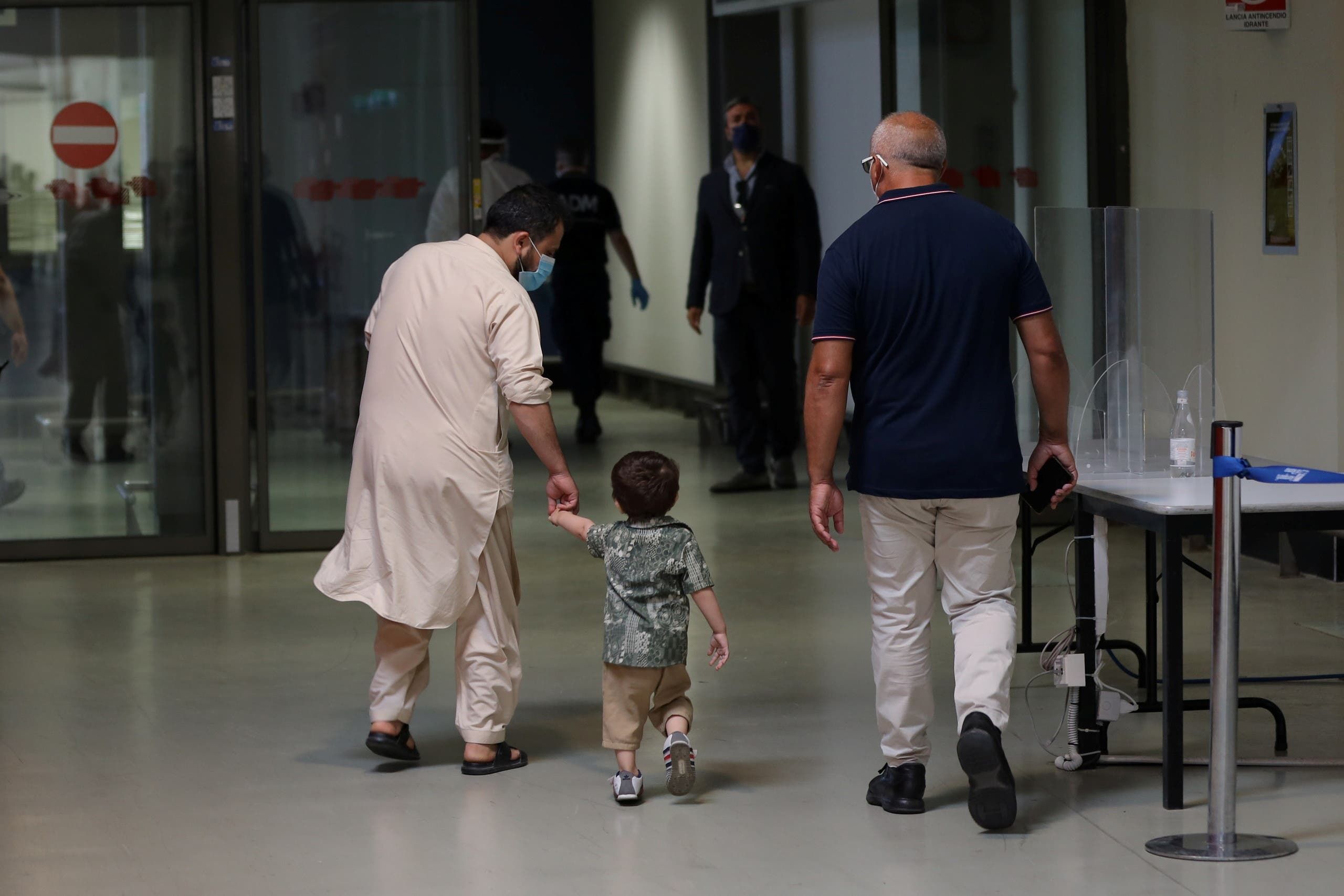 طفل أفغاني يصل إلى مطار روما بعد إجلائه من كابل