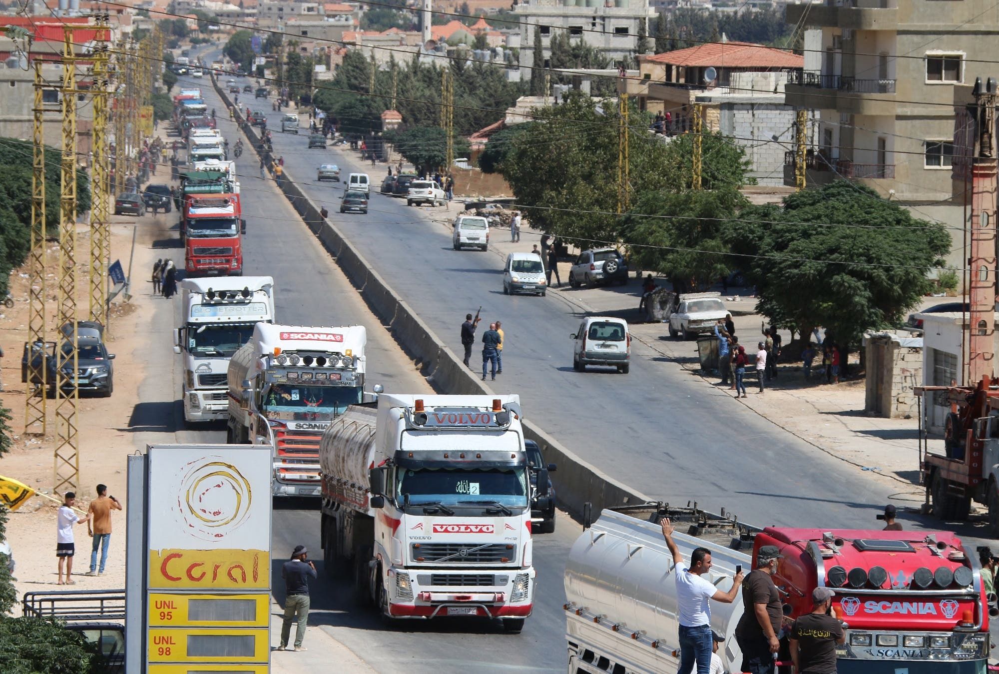 وصول ناقلات وقود إيراني من سوريا إلى العين بالهرمل شرق سهل البقاع اللبناني يوم 16 سبتمبر 2021 (فرانس برس)