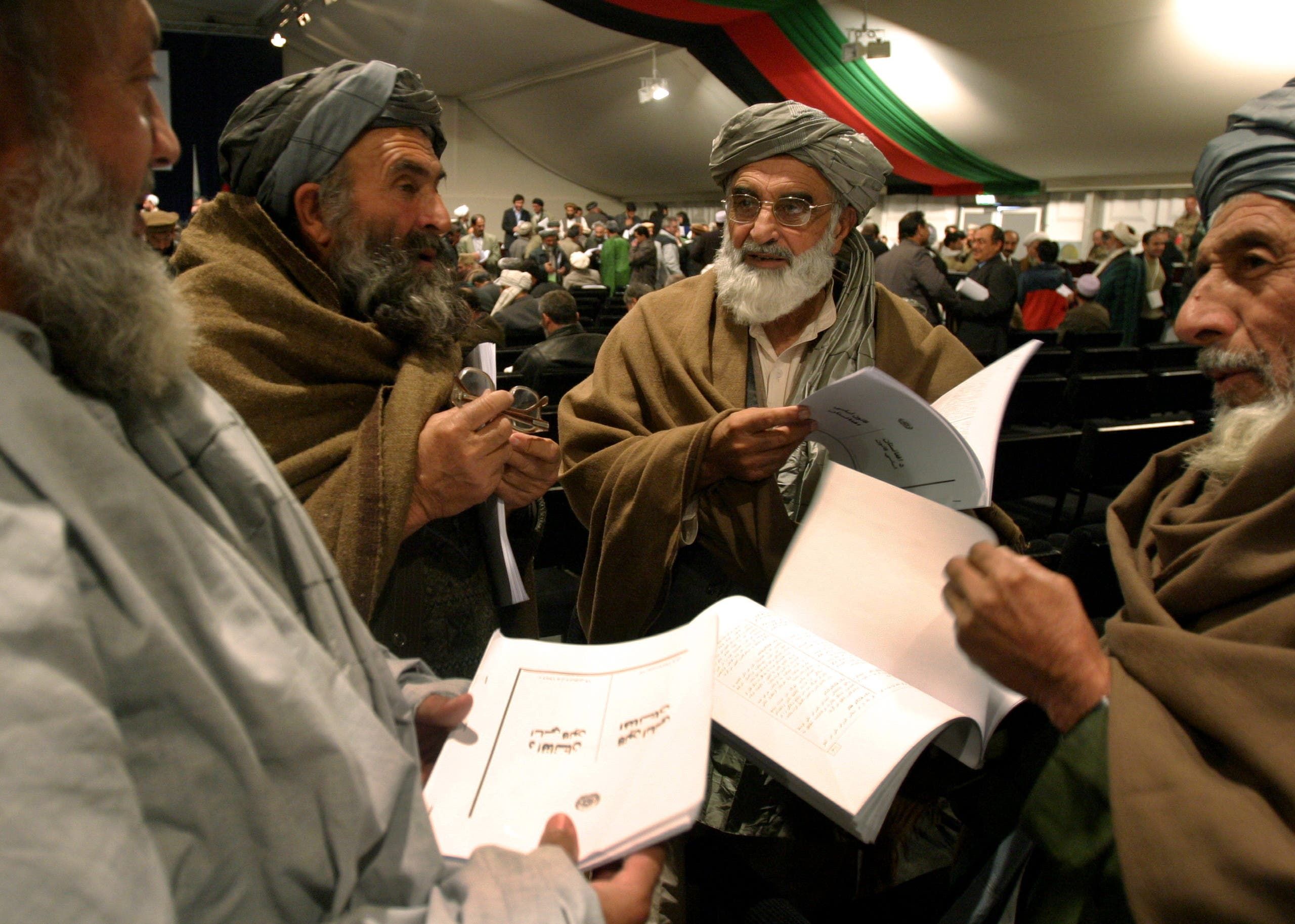 أعضاء في البرلمان الأفغاني يقرؤون الدستور الجديد للبلاد الذي تم تبنيه في 2004