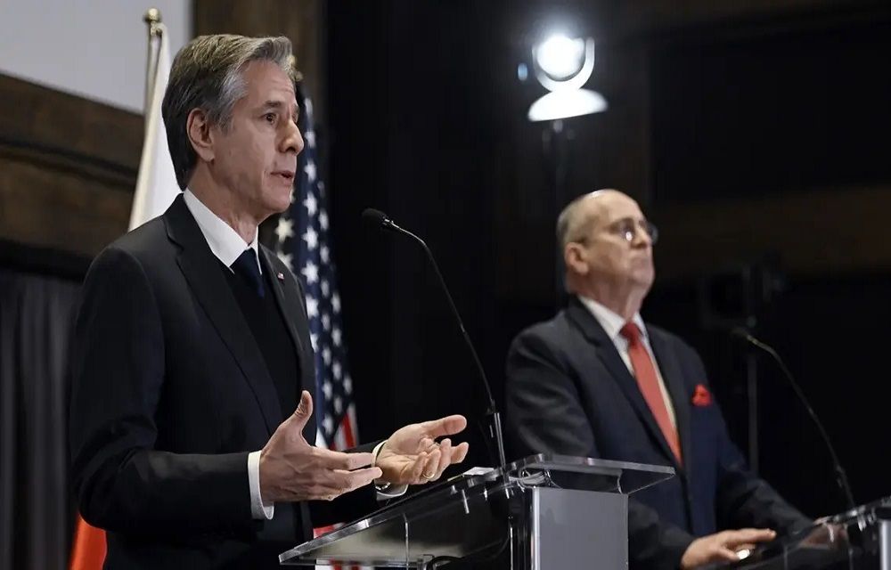 وحذر بلينكن خلال مؤتمر صحافي مشترك مع نظيره البولندي زبيغنيو راو، من أن “قيم الحرية والديمقراطية والسلام مهددة في المنطقة”، مشددا على أن “الولايات المتحدة ستواصل دعم أوكرانيا ضد الهجمات الروسية”.