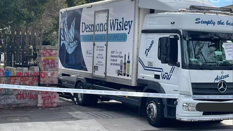اقتحمت شاحنة في ايرلندا كان يقودها أحد الرجال بوابات السفارة الروسية في دبلن.