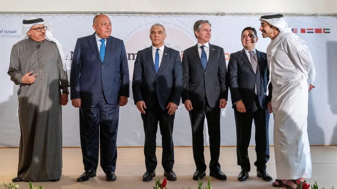 اختتمت أعمال قمة النقب في إسرائيل اليوم الاثنين، بمشاركة وزراء خارجية الولايات المتحدة والإمارات والبحرين والمغرب ومصر، وأكد البيان الختامي للقمة على تشكيل لجان أمنية لمواجهة تهديدات إيران في المنطقة، وشبكة أمنية للإنذار المبكر، مشيراً إلى أن القمة ستعقد بشكل دوري.
