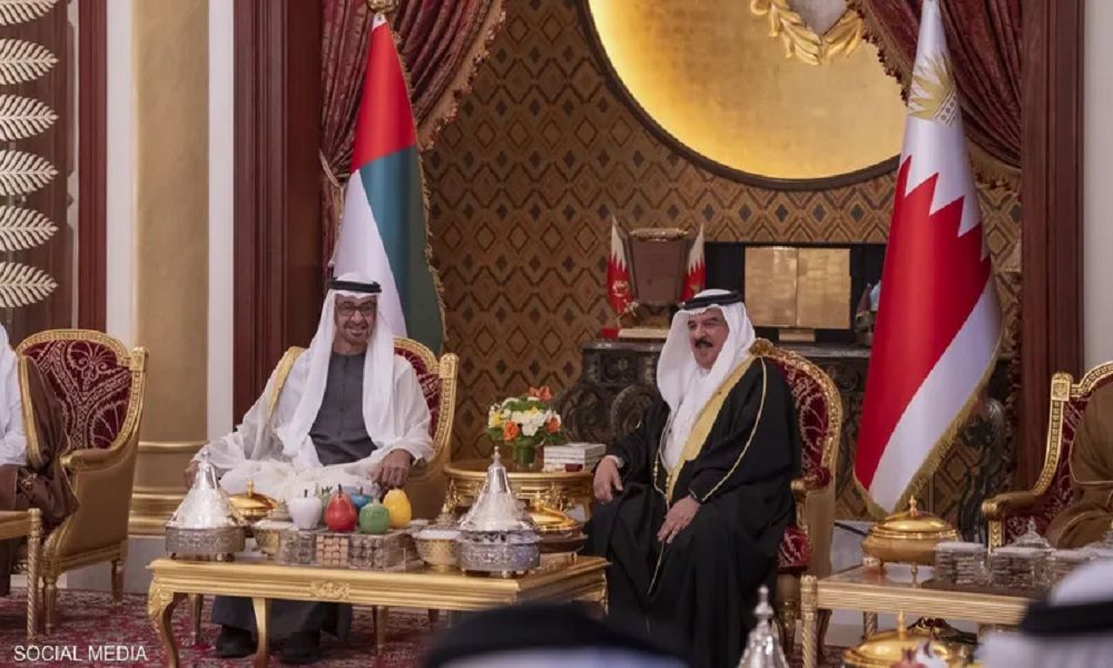 وقال الشيخ محمد بن زايد، على حسابه الرسمي في تويتر: “التقيت أخي جلالة الملك حمد بن عيسى في قصر الصخير في البحرين.. وبحثنا العلاقات الأخوية الراسخة بين بلدينا، ودعم العمل الخليجي المشترك”.