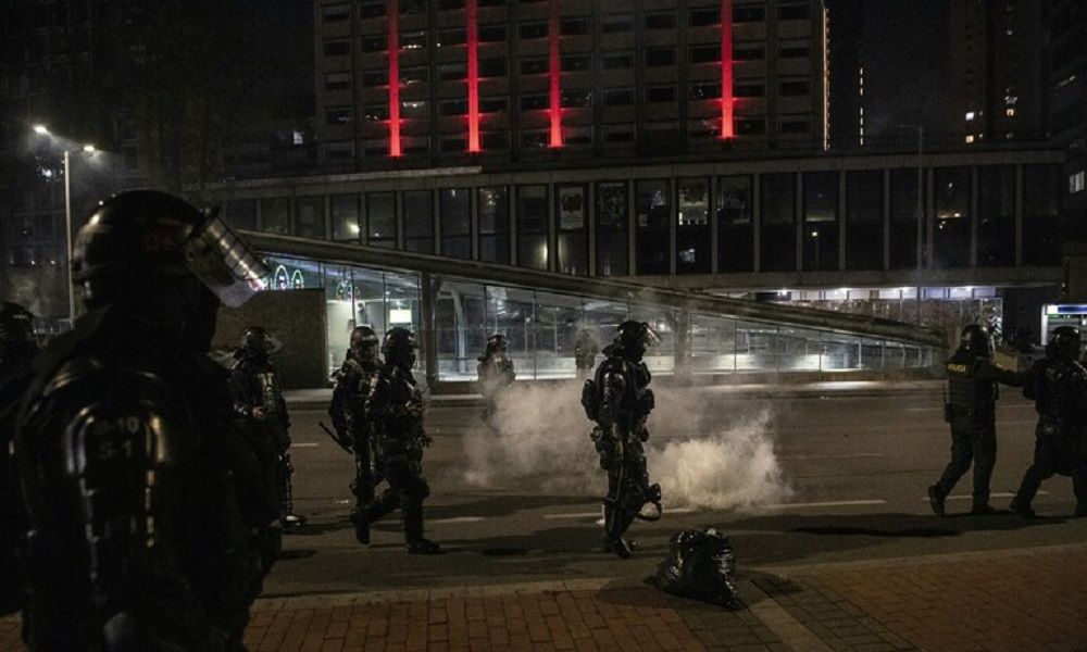 وألقى المتظاهرون المقنعون في العاصمة بوغوتا، وفي ميديلين وبوبايان، الحجارة وزجاجات المولوتوف والألعاب النارية على عناصر الشرطة، وردت الشرطة بالذخيرة غير المميتة والغاز المسيل للدموع.