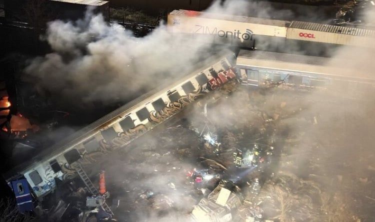 ونجم الحادث عن اصطدام قطار شحن بقطار ركاب كان يقل 350 راكبا في رحلة بين العاصمة أثينا ومدينة تيسالونيكي في شمال شرق البلاد.
