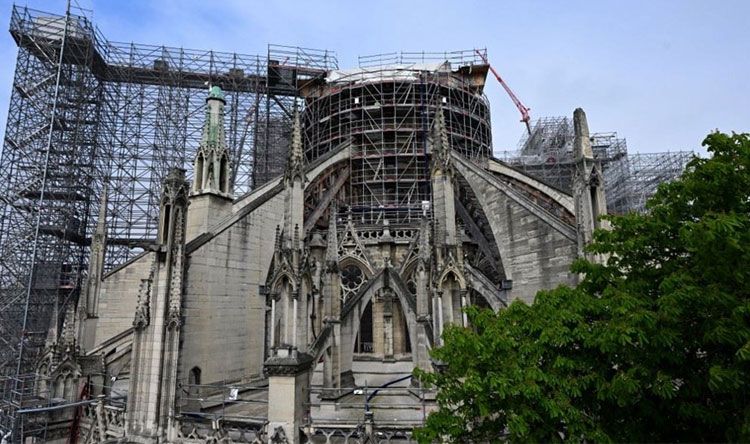 وذكرت المؤسسة المسؤولة عن أعمال الترميم أن “تركيب قاعدة السهم”، التي تزن 80 طناً والمكوّنة من مجموعة من أجزاء من خشب البلوط ومصنوعة في منطقة لورين، “ستنتهي السبت”، بعد مرور أربع سنوات على الحريق.