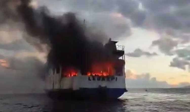 اشتعلت النيران في عبارة فيليبينية، اليوم الأحد، كان على متنها 120 من الركاب وأفراد الطاقم.