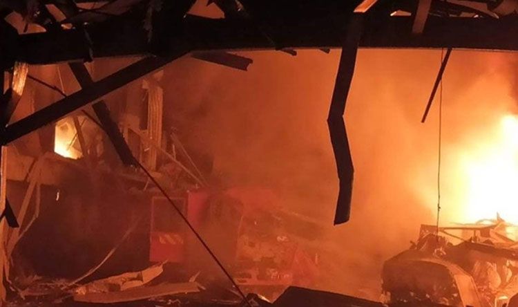 وعلق عدد من الأشخاص داخل المصنع إثر حدوث الانفجارات التي أدت إلى انهيار جزء من السقف.