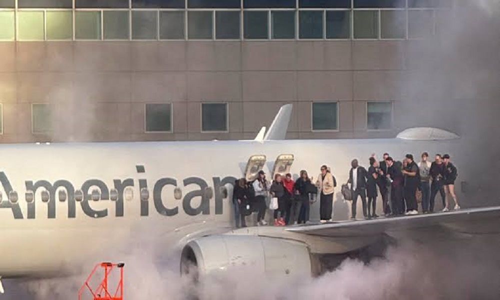 وأصيب الركاب بالذعر عندما سمعوا دوي انفجار قوي وشاهدوا ألسنة اللهب قبل أن يتم إجلاؤهم على زلاقة ملحقة بالطائرة.
