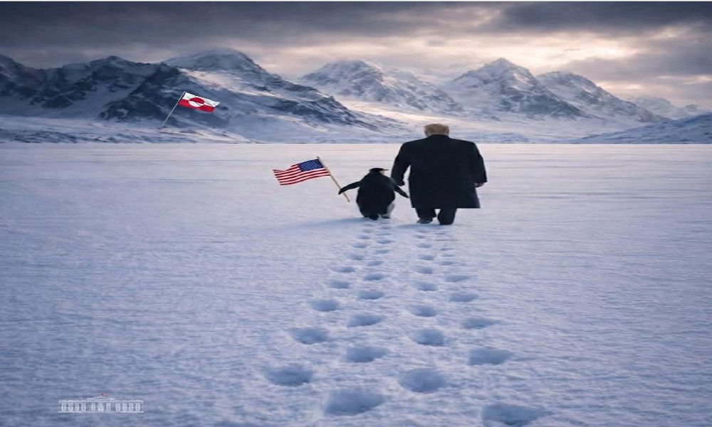 ردّ البيت الأبيض على موجة السخرية التي طالت صورة مركّبة للرئيس الأميركي دونالد ترامب برفقة بطريق يحمل العلم الأميركي في جزيرة غرينلاند.