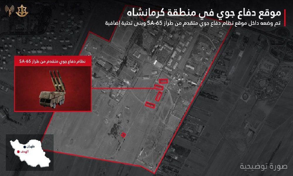 وأوضح أدرعي أن عشرات الطائرات الحربية شاركت في الغارات، حيث استهدفت إحدى الضربات نظام دفاع جوي متقدّم من نوع SA-65 في منطقة كارمنشاه.