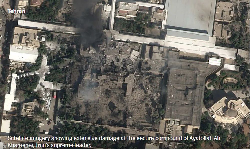 أظهرت صورة التُقطت بالأقمار الصناعية، مقر المرشد الإيراني علي خامنئي بعد تعرضه لاستهداف أميركي إسرائيلي صباح السبت. تجدر الإشارة إلى أنه تم الإعلان رسميا من إيران عن مقتل خامنئي فجر اليوم الأحد.