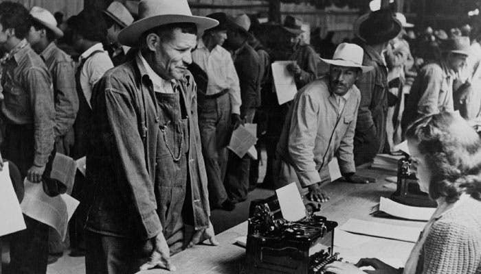 صورة لعدد من المهاجرين المكسيكيين العاملين بمجال الفلاحة أثناء حصولهم على وجبة طعامهموفي سنة 1929، اقترح السيناتور الديمقراطي كولمان ليفنغستون بليز (Coleman Livingston Blease) صياغة قانون جديد لتحديد هجرة المكسيكيين، حسب حاجيات قطاع الفلاحة الأميركي والمصلحة الوطنية. وبموجب ذلك، عرض هذا السيناتور تمرير قانون يجرّم هجرة المكسيكيين، المقدر عددهم بنحو 1.5 مليون نسمة بجنوب الولايات المتحدة الأميركية حينها، الذين يعبرون الحدود دون المرور بنقاط دخول رسمية لدفع معلوم العبور والخضوع لجانب من الاختبارات.
