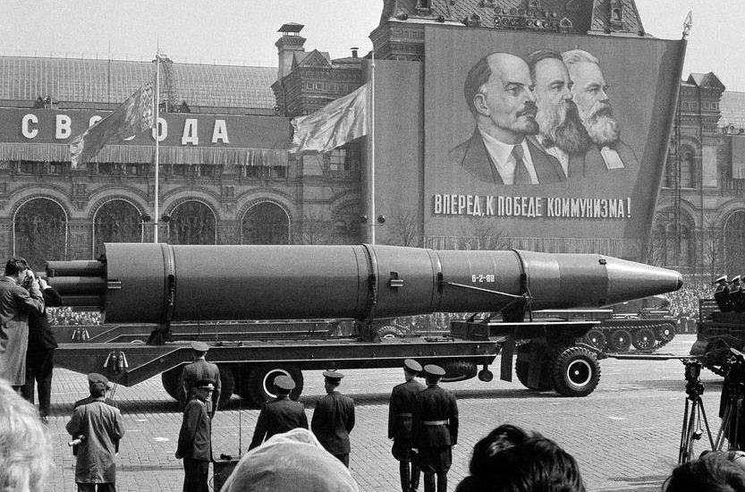 صورة لجانب من الصواريخ السوفيتية خلال استعراض عسكري سنة 1960