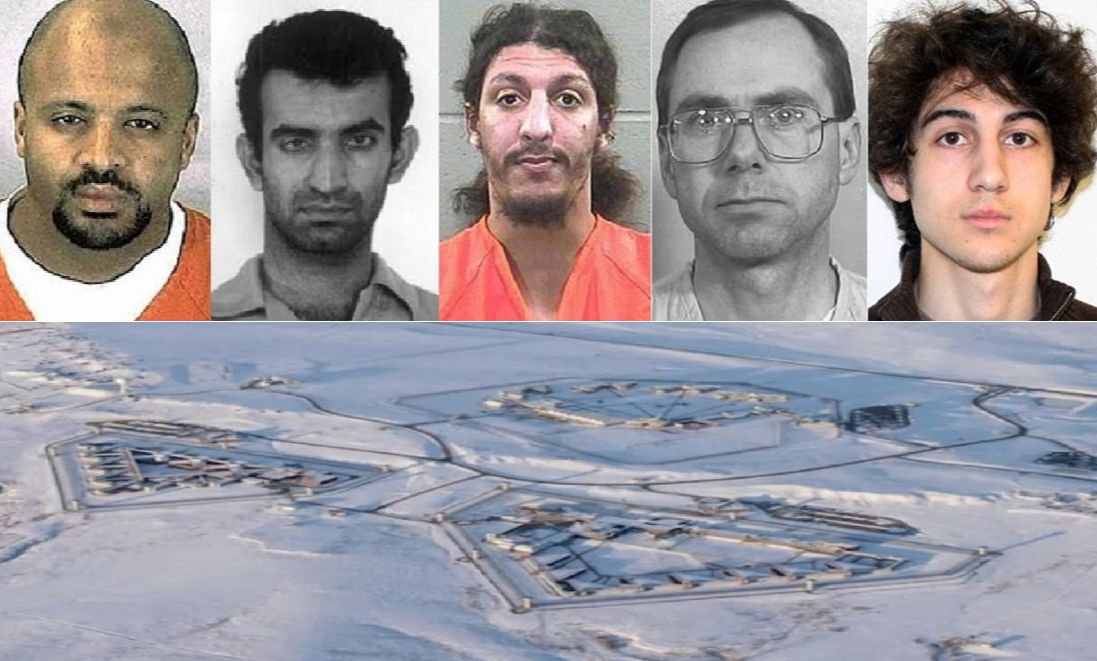 في هذا السجن سيقضي إل تشابو بقية عمره مع مشاهير بالإجرام والإرهاب نزلاء فيه، منهم إلى اليمين جوهر تسارناييف وتيري نيكولز وريتشارد ريدز ورمزي يوسف وزكريا موسوي